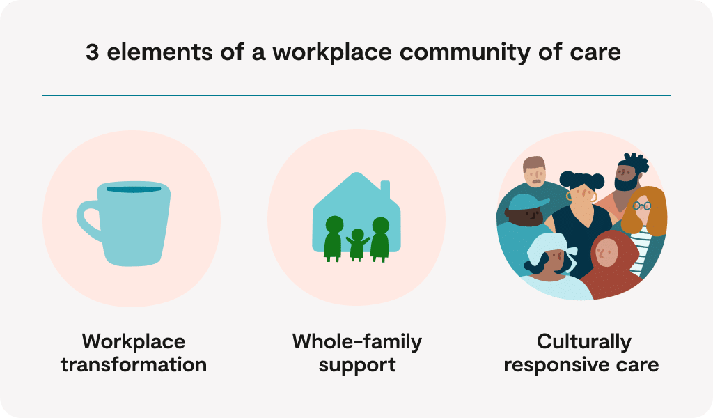 A culture of sustainable work thrives on three key elements: workplace transformation, whole-family support, and culturally responsive care.