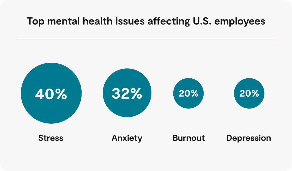 Almost one-third of employees today list work-related stress and burnout as their top mental health concern, highlighting the importance of direct workplace interventions to support employee wellness.