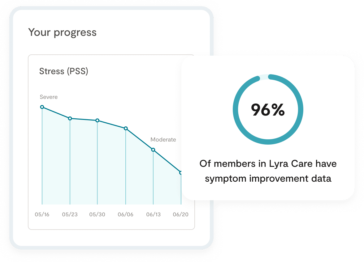 Members complete assessments before, during, and at the completion of care to give providers insight into treatment progress and offer population insights about how Lyra works for your entire workforce.