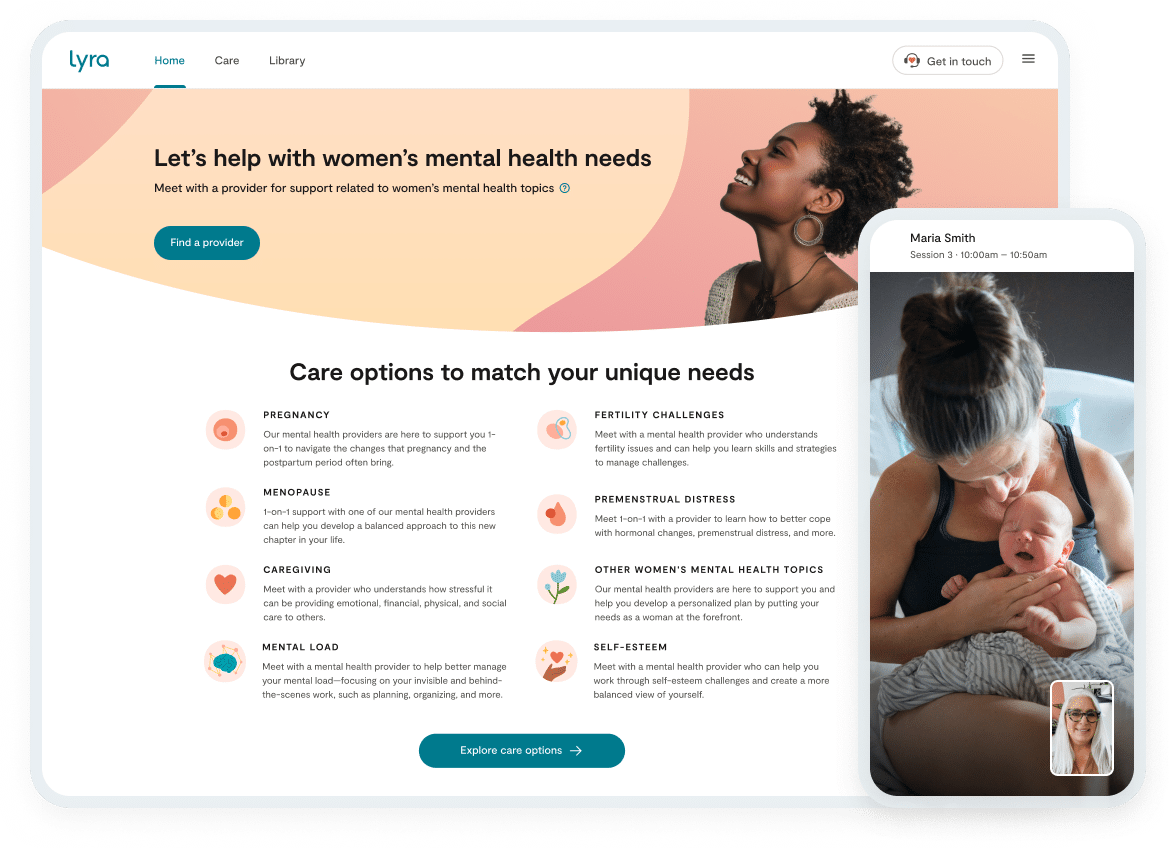 Lyra is redefining support for the realities women face with specialized providers, whole-person care, and one connected experience.